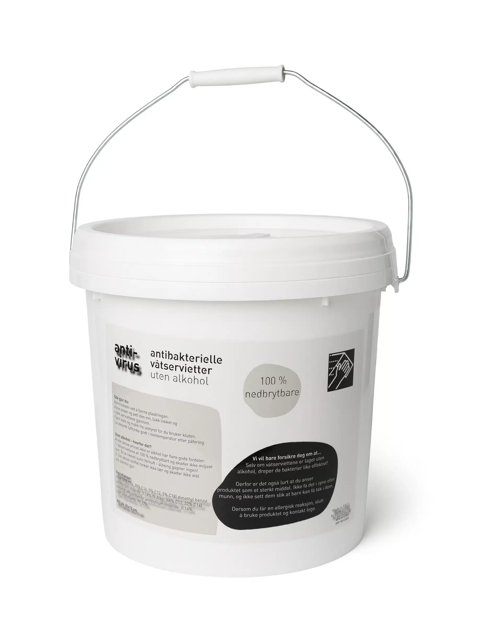 - Antall wipes per bøtte: 800stk