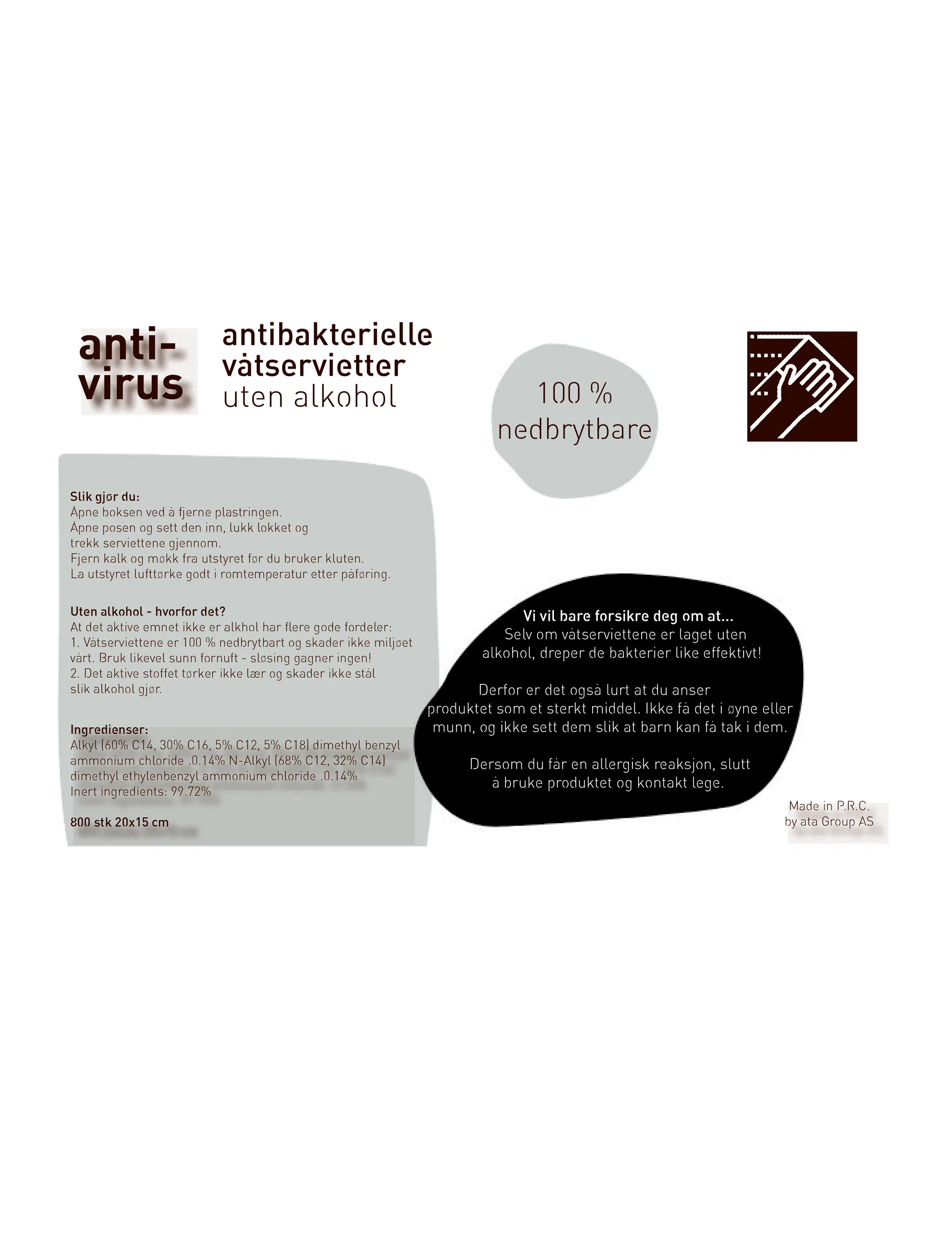 - Mål per wipe: 20x15cm